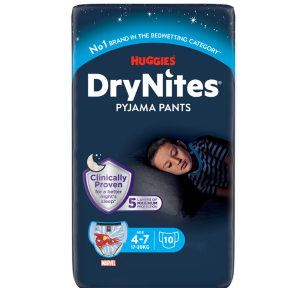 DryNites nachtbroekjes zijn vooral aan te bevelen als jouw kind ergens gaat logeren, bijvoorbeeld bij vriendjes of grootouders... De broekjes zijn absorberend en discreet, het lijkt op echt ondergoed en biedt maximale bescherming, met een naar leeftijd aangepast absorptievermogen. Mocht jouw kind aarzelen, omdat het bang is om geplaagd te worden, leg dan uit dat het geen luiers zijn, maar dat het absorberend ondergoed is. Maar je mag jouw kind nooit opdringen om dit te dragen. Wees er ook op bedacht dat jouw kind ‘s avonds zijn eigen ondergoed zelfstandig zal moeten aantrekken en 's ochtends ook zelf in de vuilnisbak zal moeten gooien. Dankzij dit ondergoed zal jouw kind "droog" slapen. Het is een perfect hulpmiddel dat zijn slaap en zijn sociale leven in deze tijdelijke fase zal beschermen. Jouw kind slaapt vaster met een droog gevoel dan met een nat gevoel en is de volgende dag actiever...